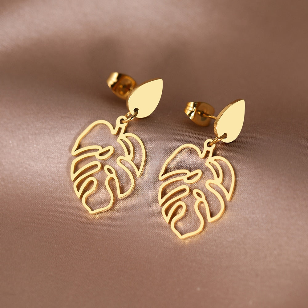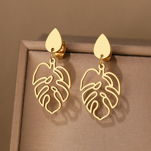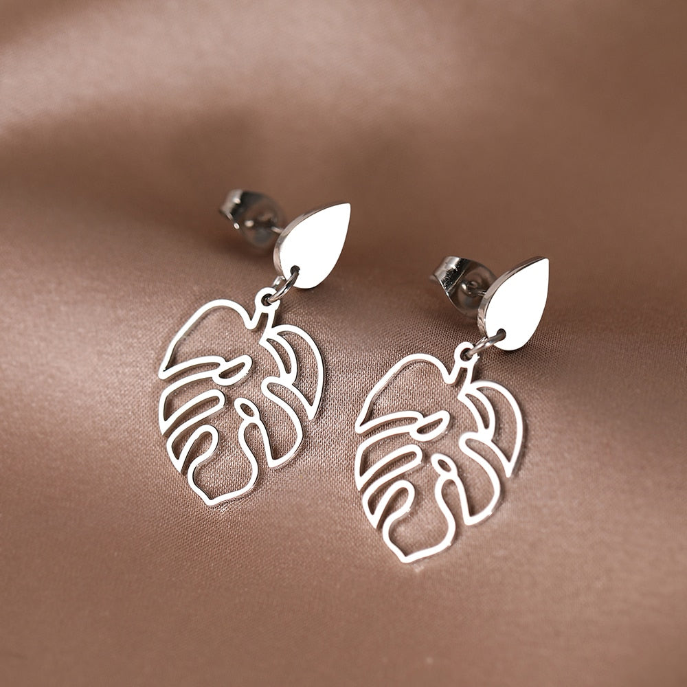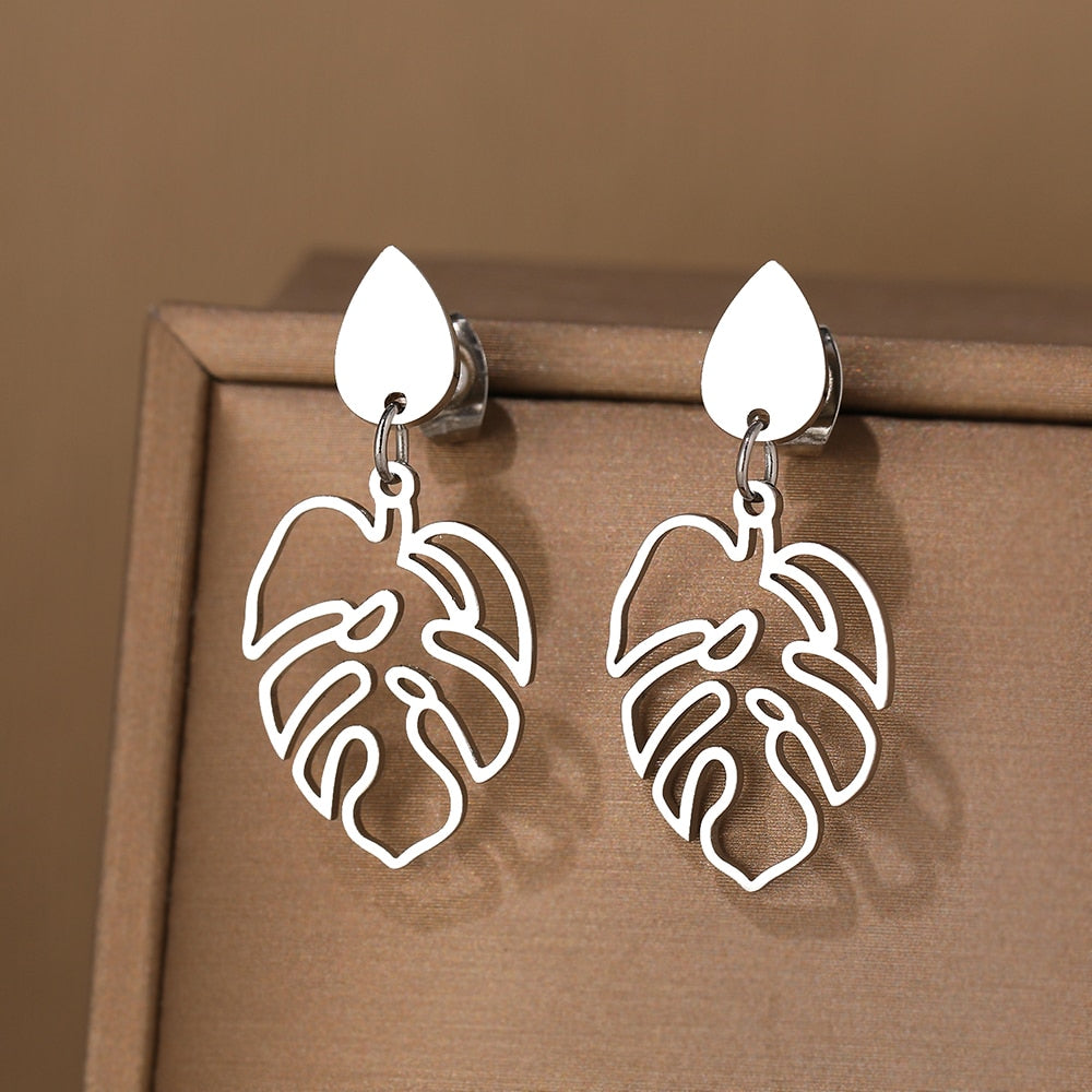 Brincos de aço inoxidável clássico com pingentes de planta .